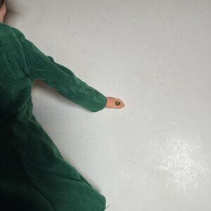 This vintage doll is in good to excellent condition. The clothing is clean and appears to be free of significant rips or tears. The hair is in its original style. There may be some minor wear consistent with the age of a collectible item. Please carefully examine the photos to assess the doll's condition for yourself, as they are part of the description.