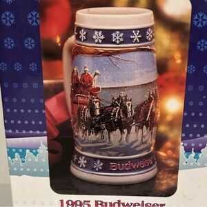 1995 Budweiser Holiday Stein titled "Lighting The Way Home"