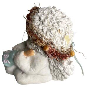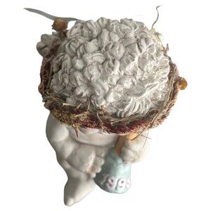 Cherub angel figurine from 1995, holding a bell and wearing a floral wreath. Adds a vintage charm to any collection or décor setting.