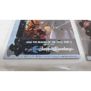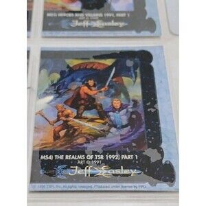 UP FOR SALE IS ONE COMPLETE SET OF BASE AND METALLIC CHASE SET OF FANTASY ART CARDS BY JEFF EASLEY. THESE CARDS WERE MADE BY TSR ON LICENSE FROM FPG IN 1995