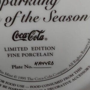 1995 Franklin Mint Coca Cola Santa Claus plate sparkling signs of the season