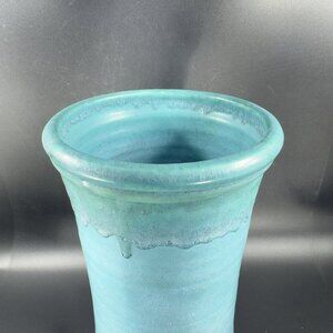 1995 Galena Pottery Company Large Heavy Vase Vessel Turquoise Drip Glaze Signed