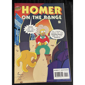 The product is a HOMER ON THE RANGE #1 comic book from Bongo Comics Group in 1995. This particular issue features the character Homer from The Simpsons series and falls under the genre of Movie & TV comics. The comic book is from the Modern Age era of US comics and serves as a collectible item for fans of The Simpsons and comic book enthusiasts.