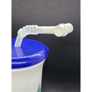 This vintage tumbler doesn't appear to have ever been used some light wear from being stored away for years and years in the blue top . Straw has cap that's what is tucked into the straw. Looks great super rare we couldn't find another one.