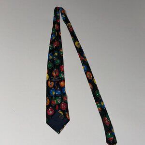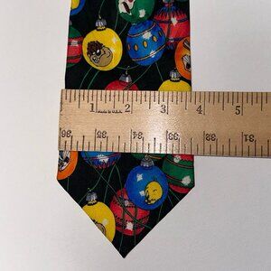 1995 men’s looney tunes mania christmas holiday tie - christmas tree with ornaments featuring bugs bunny / daffy duck / tweety bird / sylvester / Tasmanian devil
