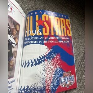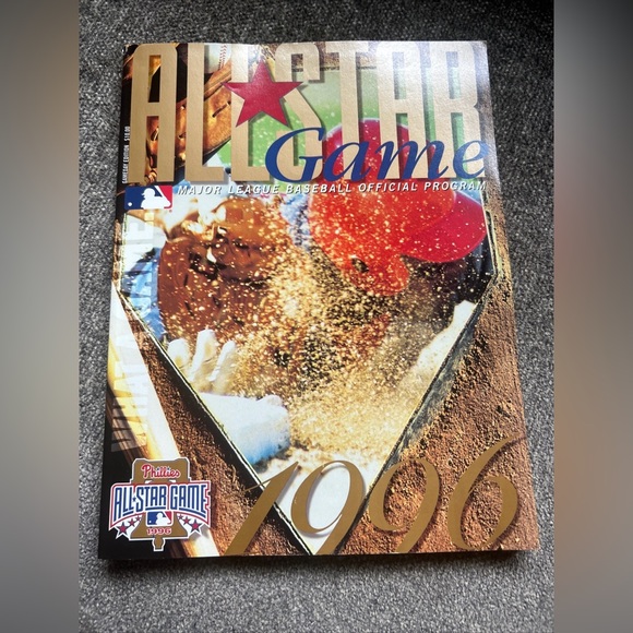 This is a rare and valuable program from the 1996 Major League Baseball All-Star Game held at Philadelphia's Veterans Stadium. The program is a must-have for any vintage baseball memorabilia collector. It includes information about the game, the players, and the history of baseball in Philadelphia. This program is a true piece of sports history and would make a great addition to any collection.