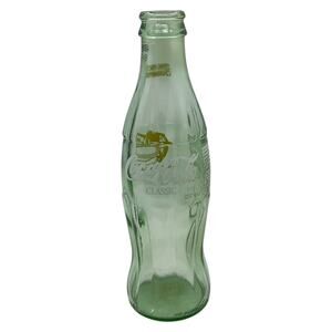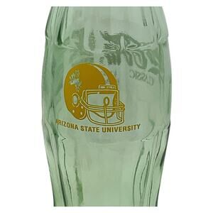Original 1996 Coca-Cola glass bottle celebrating Arizona State University as PAC 10 Champions. This commemorative 8 oz green-tinted bottle features the ASU football helmet and Coca-Cola Classic branding. A great piece of sports memorabilia for collectors of college football or Coca-Cola. Not embossed.