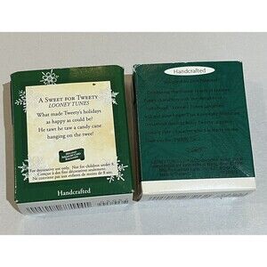 The 1996 Baby Tweety and 2003 Tweety Looney Tunes Hallmark Keepsake Miniature Ornament set includes two vintage ornaments featuring the popular character Tweety Bird from the Looney Tunes franchise. These multicolored ornaments are part of the Looney Tunes Lovables collection and are ideal for bird lovers or fans of classic cartoons. Perfect for Christmas, these ornaments add a touch of nostalgia and whimsy to any holiday decor for families or individuals over 18 years old.