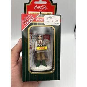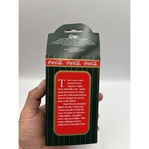The 1996 Coca-Cola Town Square Collection Village Figure features a Pizza Delivery Man, adding a nostalgic touch to your holiday decor. Made of ceramic with a square shape, this Christmas village figure is part of the Town Square collection and is perfect for any room in your home. With a winter theme, this collectible piece brings a festive and charming atmosphere to your holiday display.