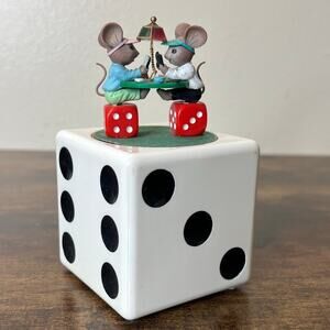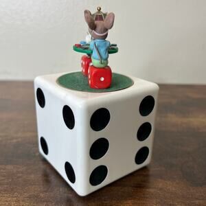 1996 Enesco Mice n Dice Musical Box "The Gambler" Casino Poker Face Pals Vintage