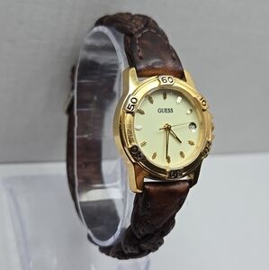 1996 Guess Watch Gold Tone Date Brown Braided Strap Vintage Style New Battery