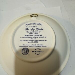 1996 LENA LIU'S Beautiful Gardens Bradford Exchange lily Garden 7" Plate Vtg