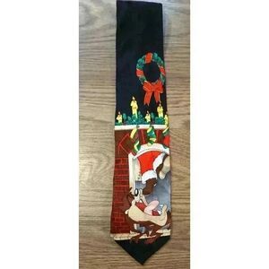 1996 Looney Tunes Christmas Tie, Tasmanian Devil Holiday Necktie, 100% Silk