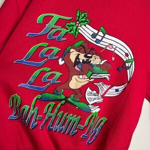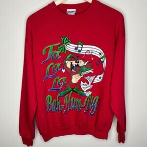 1996 Looney Tunes Tasmanian Devil Ugly Christmas Sweater Large Adult Vintage Red