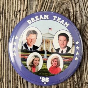 1996 Re-Elect Clinton Gore Campaign Button Badge Pin Pinback Dream Team Hillary