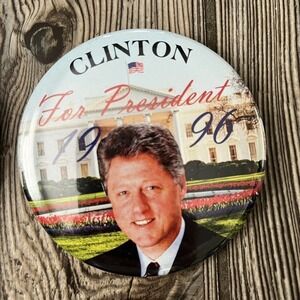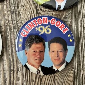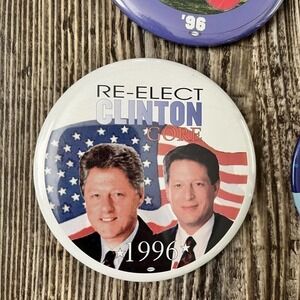 1996 Re-Elect Clinton Gore Campaign Button Badge Pin Pinback Dream Team Hillary.