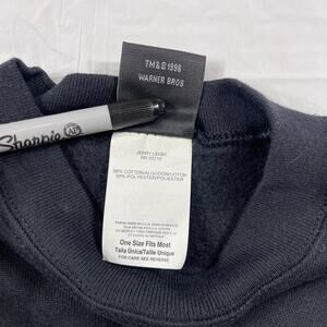 This original 1996 Space Jam sweatshirt features Lola Bunny with the bold “DON’T CALL ME DOLL!” graphic from the film’s first official merchandise wave. The bright neon colors, sharp outlines, and star background capture true mid-90s animation style. Made from a soft 50/50 cotton-poly blend with a warm fleece interior, it comes in a relaxed One Size Fits Most fit with ribbed cuffs, neckline, and waistband for comfort and structure. The tag and licensing confirm it as an authentic 1996 Warner Bros. and Jerry Leigh release—not a modern reproduction. A standout piece for Space Jam fans or vintage collectors, it pairs easily with casual outfits or works as a display item. This is a used garment and may show signs of wear or flaws.
