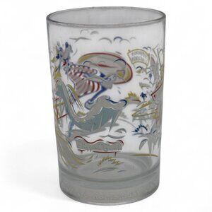 Good condition with no chips or cracks. Design and lettering remain vivid and intact. Height = 5.5 inches, Diameter = 3 inches.