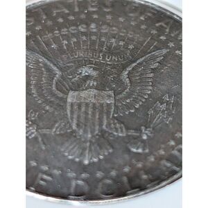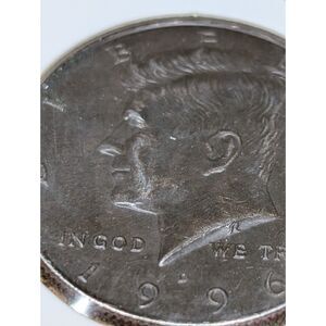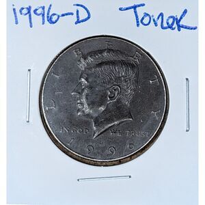This 1996-D Kennedy Half Dollar displays rich, dark toning across both obverse and reverse surfaces. The toning likely developed from long-term environmental exposure, creating a moody patina that enhances the coin’s visual texture. While circulated, the coin retains strong detail and is housed in a protective cardboard flip.
