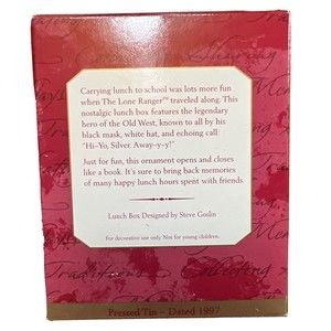 1997 Hallmark Keepsake Ornament The Lone Ranger, Lunchbox. In excellent condition. still in the box. Please see pictures for item description and measurements.