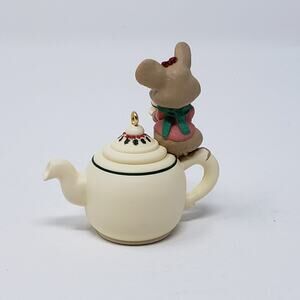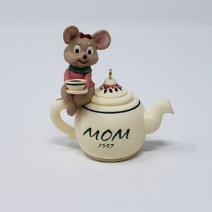 1997 Hallmark Mom Ornament. This Christmas tree ornament features a mother mouse sitting on a teapot!
