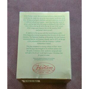 Relive the nostalgia of 1997 with this heirloom Carlton Cards Elvis Presley Musical Jukebox Christmas Ornament. Perfect for any Elvis fan's holiday decor, this collectible plays classic tunes and adds a touch of rock 'n' roll to your festive celebrations.