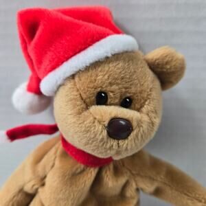 1997 Holiday Teddy Santa Hat Beanie Babies Collection Shelf Sitter No Ear Tag
