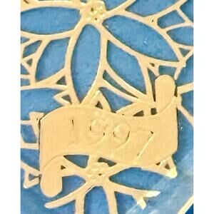 * This Holiday Treasures Collectors Acrylic 1997 Ornament is a rare find for the discerning collector. The diamond-shaped ornament features an engraved acrylic production with a contemporary style that brings out the beauty of the ornamen's design.