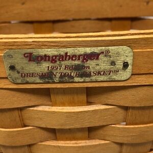 1997 LONGABERGER DRESDEN TOUR BASKET. Basket in good condition, plaque needs a little polishing.