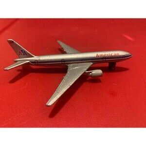 This is a pre-owned 1997 Matchbox Int'l Ltd American Airlines Boeing 777-200 SB041 metal toy airplane. It is in good shape with minor wear and tear. This is a great addition to any airplane toy collection.