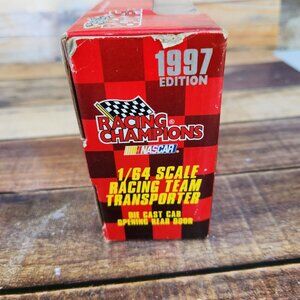 The car transporter model is part of the Aqua Fresh series and comes with a NOS (Not On Shelf) label. This is a rare find for collectors and fans alike. The vehicle year is 1998, and it is made of high-quality materials. This Racing Champions model is a perfect gift for anyone who loves NASCAR or diecast cars.