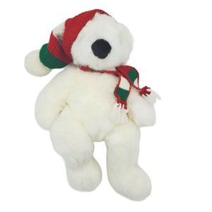 • polar bear plush, white teddy bear, Ty Bear, scarf, hat,