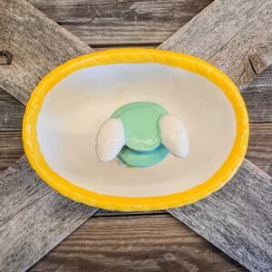 1997 Vintage Hermitage Pottery, Ceramic Easter Bunny and Basket Jelly Bean Dish