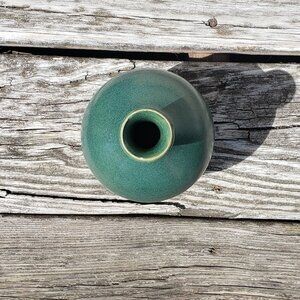 This is an artist signed, glazed green, farmhouse style studio pottery from 1998. No chips or cracks. Great condition. It is about 6 inches tall. Comes from a non-smoking house.