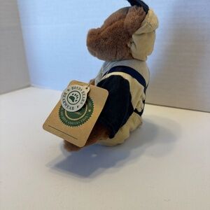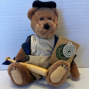 This bear’s name is Slugger and he stands at 8 inches tall. He is a brown bear dressed in a sporty baseball outfit. Along with his outfit he also comes with his own wooden baseball bat. He is fully jointed and posable. He is a must have for any collector. Boyds Bears are no longer being produced.