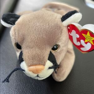 Charming Ty plush cougar. Soft tan fur with striking black details. Ideal for collectors.