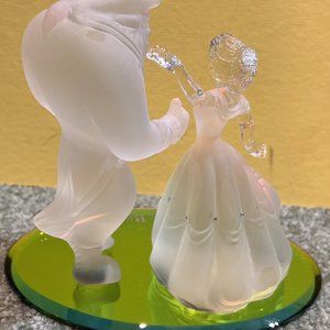 This beautiful glass figurine captures the essence of the beloved Disney classic, Beauty & The Beast. Crafted by Arribas Brothers, this piece is a true collector's item. The intricate design and attention to detail make it a stunning addition to any Disneyana collection. I bought this in 1997 for $225. It is number 30 of 9,910 made. Try finding one! You won’t. The cheaper $75 one is all just clear crystal. This is different with a larger base and it really catches the light! High bidder gets it!