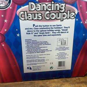 1998 Gemmy Dancing Claus Couple Animated Dancing Singing Santa & Mrs Claus TESTED. LIGHTS work and the Clauses Dances and Music plays. Mrs. Claus doesn’t move very Well. Mr. Claus gets his groove on.