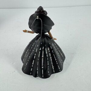 Beautiful 1998 Hallmark Keepsake African-American Holiday Barbie Ornament — part of the New Collector’s Series. Features Barbie in a stunning black gown with pink cape and sparkling accents.