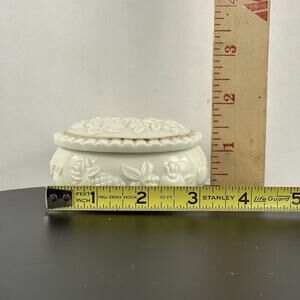 1998 LENOX Porcelain Embossed Fruits of Life Oval Trinket Box Gold Trim