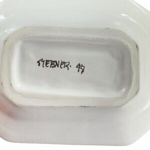 1998 Pottery Dish Tray Artist Signed Stebner Hand Painted Porcelain Sheep VTG