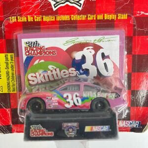 Details: 1998 Racing Champions Ernie Irvan #36 Skittles Wild Berry 1:64 diecast metal car NASCAR 50th Anniversary Edition With Collector Card & Display Stand!