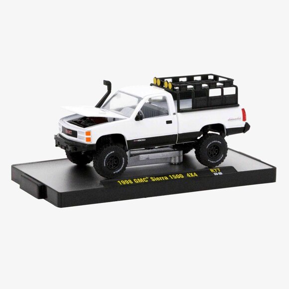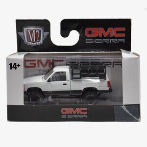 This 1998 GMC Sierra 1500 model is a unique collectible from M2 Machines. At 1:64 scale, or about 3" long, this die-cast model represents a classic white 1998 GMC Sierra 1500 4x4. The truck has black wheels, bumpers, and a black bed rack, which contrast nicely with its white paint. Someone donated this model new in its original sealed but torn box (0.5" tear on top, 0.75" taped tear on front). Despite the two tears and other mild wear from storage, the box is sealed and would make a great gift. By purchasing this item, you're supporting Father Joe's Villages' mission to prevent and end homelessness in San Diego.