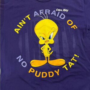1998 Tweety Bird Ain’t Afraid of No Puddy Tat! Cape May Looney Tunes WB Warner Bros Vintage Tourist Short Sleeve Purple Unisex T-Shirt XL Oversized 90’s Made in USA. Excellent condition, no peeling or wear. Smoke & pet free home. Bundle to save - I have lots of tshirts & vintage items!