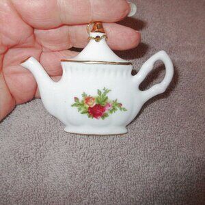 1998 Vintage Royal Albert China Teapot Christmas Ornament Country Roses Holiday