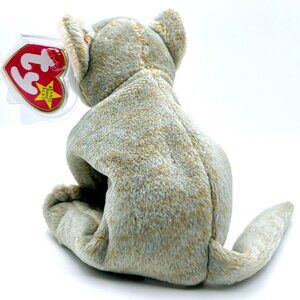 This is Scat, a kitten with plush that is a tight mix of grayish blue and tan. She has a cute pink nose and pink whiskers. The bottoms of her feet and inner ears is cream/beige. Style 4321. She was introduced on 01/01/99 and retired just about a year later on 12/23/99.