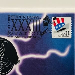 Stamped First Day of Issue with "Super Bowl XXXIII Denver Broncos Atlanta Falcons"