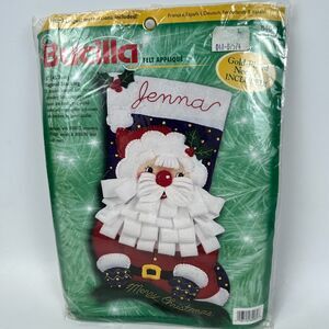 1999 Bucilla 84062 Felt Applique 18" Diagonal Stocking Bearded Santa Kit 18" VTG