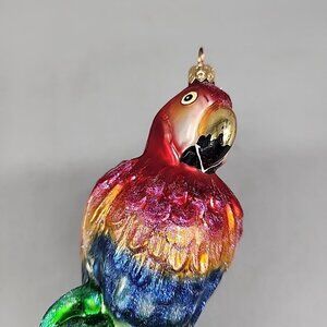 1999 Christopher Radko Blue Amazon Large Parrot Glass Christmas Ornament 8"