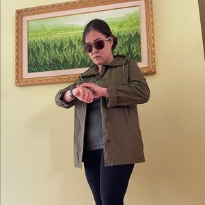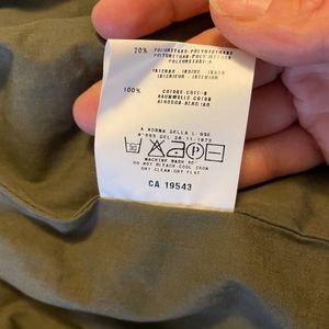 Unisex straight fit jacket. A grail piece as they say. Made in Italy, cotton blend military style ready to wear archive collection piece from Helmut Lang. Still a coveted designer despite his turn away from fashion. Vintage jacket has one button popped off - safely inside front zip pocket. I would fix but don’t have a matching color thread. Hideaway button flap. Collar can be worn up or down.